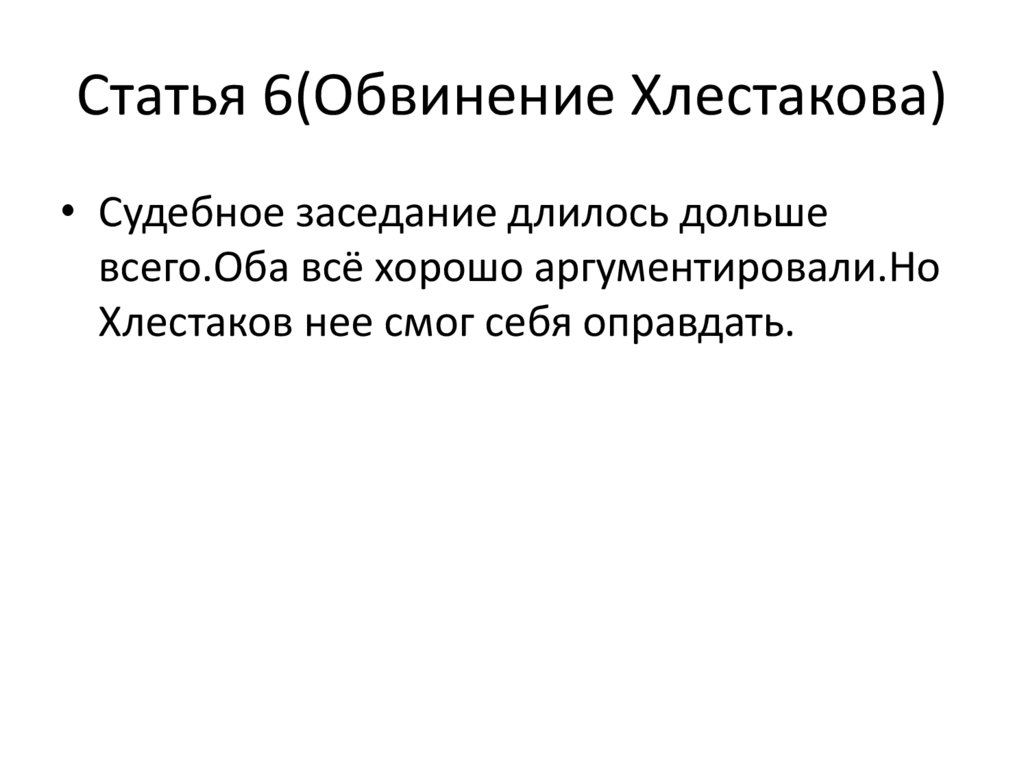 Статья 6(Обвинение Хлестакова)• Судебное заседание длилось дольше