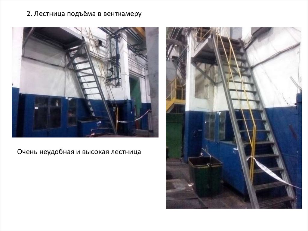 2. Лестница подъёма в венткамеруОчень неудобная и высокая лестница