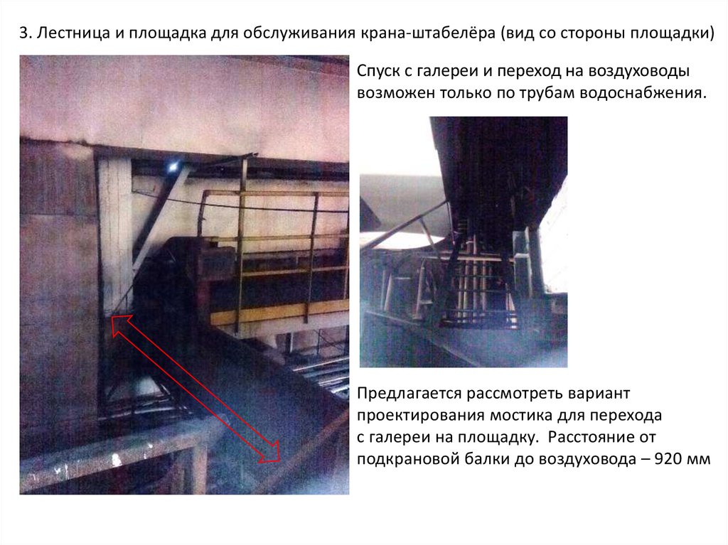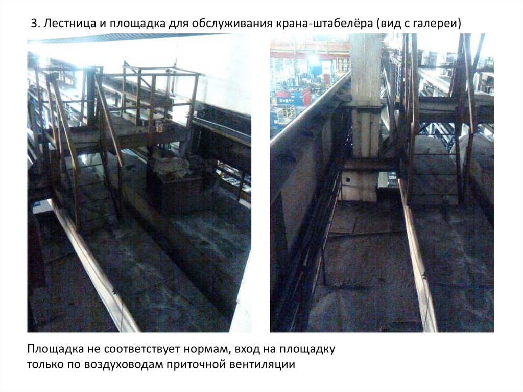 3. Лестница и площадка для обслуживания крана-штабелёра (вид с галереи)Площадка не соответствует нормам, вход на площадку