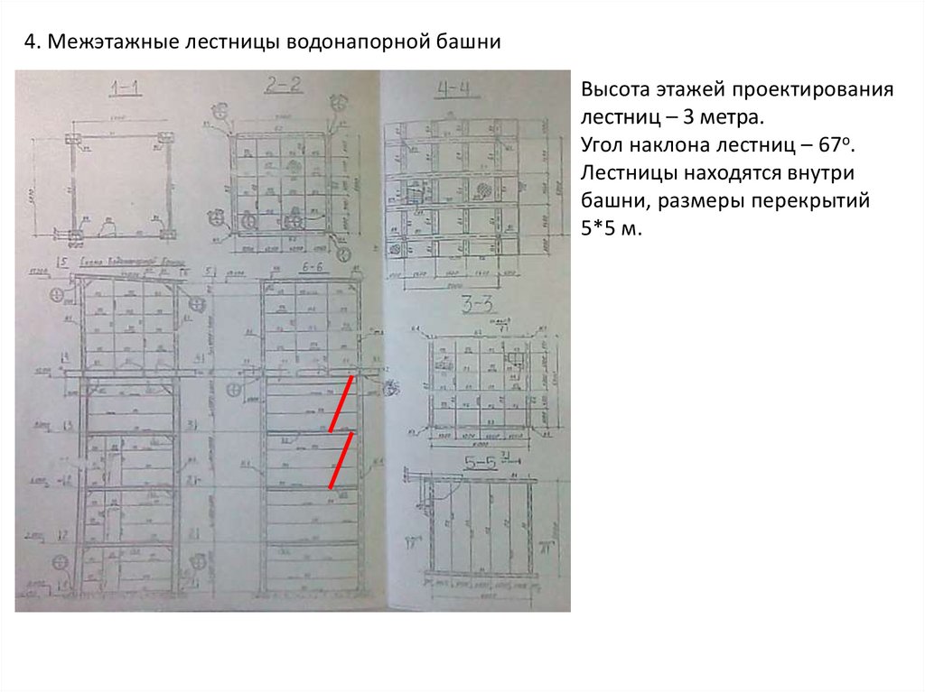 4. Межэтажные лестницы водонапорной башниВысота этажей проектирования