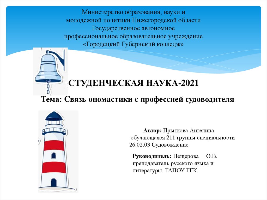 Антропонимика в профессии судоводителя в ГГКАнтропонимика