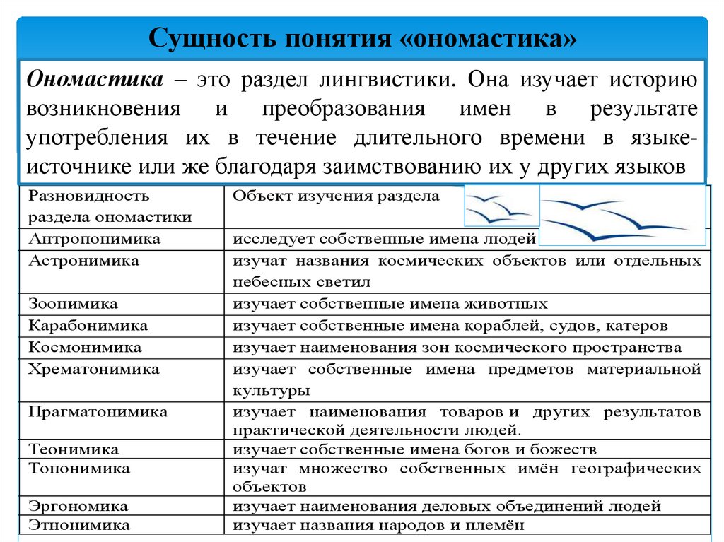 Ономастика ‒ это раздел лингвистики. Она изучает историю
