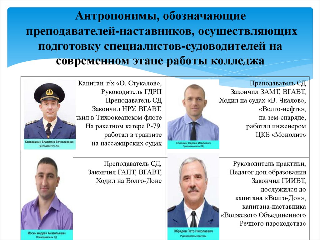 Антропонимы, обозначающиепреподавателей-наставников, осуществляющих