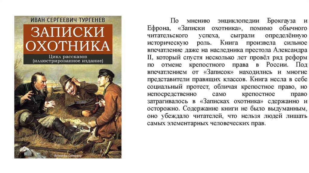 По мнению энциклопедии Брокгауза иЕфрона, «Записки охотника», помимо обычного