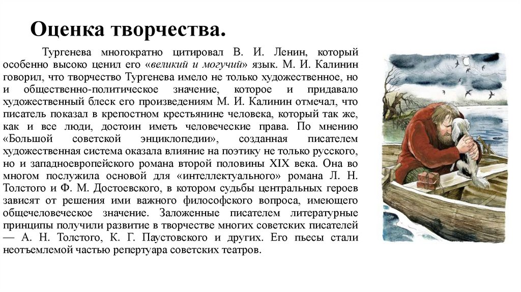 Оценка творчества.Тургенева многократно цитировал В. И. Ленин, который