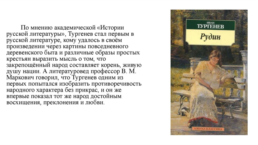 По мнению академической «Историирусской литературы», Тургенев стал первым в