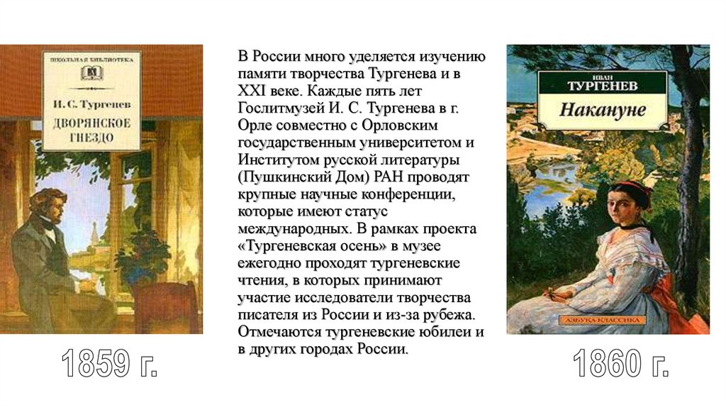 В России много уделяется изучениюпамяти творчества Тургенева и в