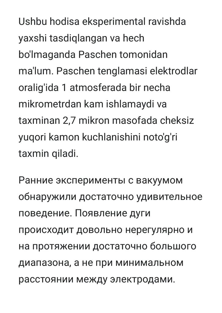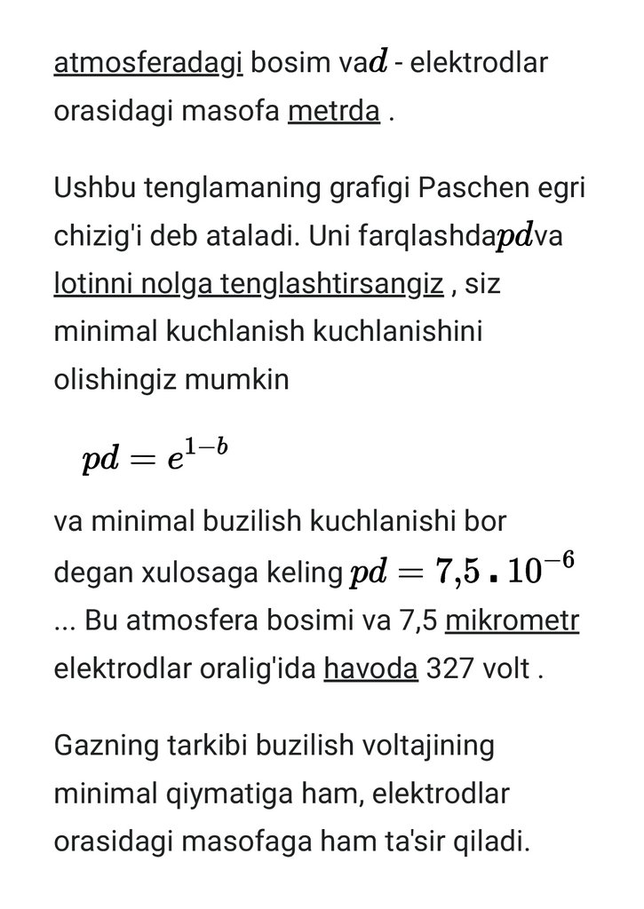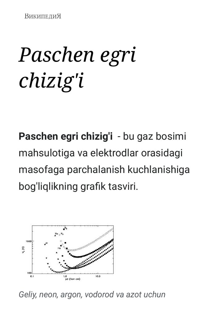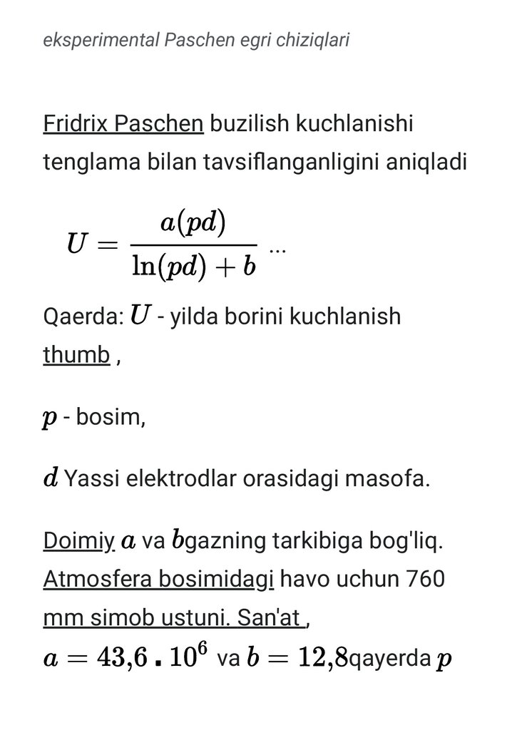 eksperimental Paschen egri chiziqlariFridrix Paschen buzilish kuchlanishi