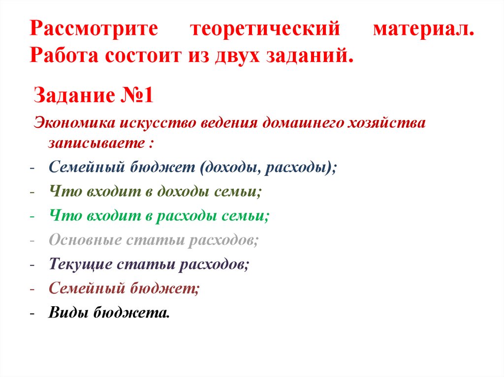 Тема проекта: Семейное хозяйство.Рассмотрите теоретический материал. Работа состоит из
