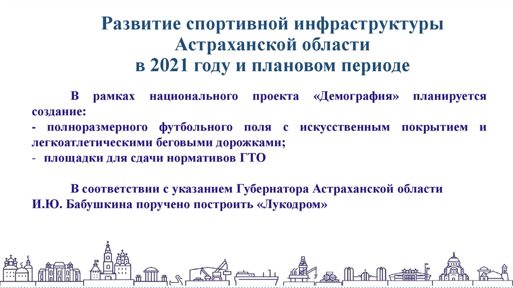 Развитие спортивной инфраструктуры Астраханской области в 2021 году и плановом периоде
