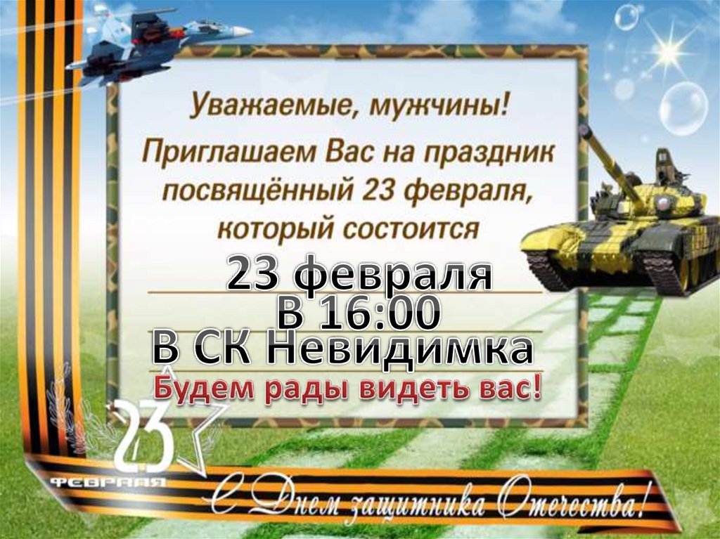 Приглашаем Вас на праздник посвящённый 23 февраля