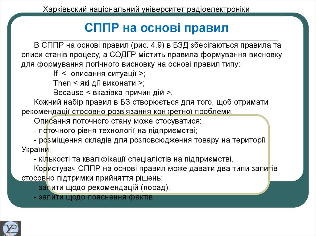 Харківьский національний університет радіоелектронікиСППР, яка ґрунтується на знаннях