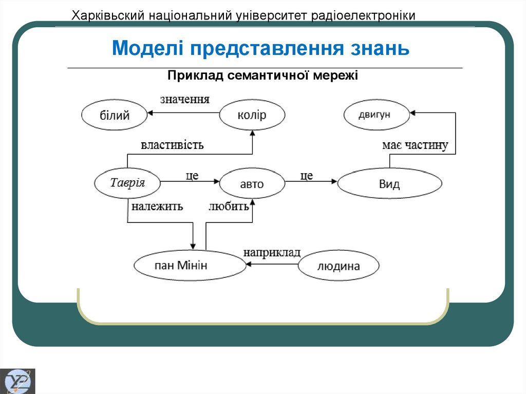 Приклад семантичної мережі показано на рис. 4.12. Вершинами тут