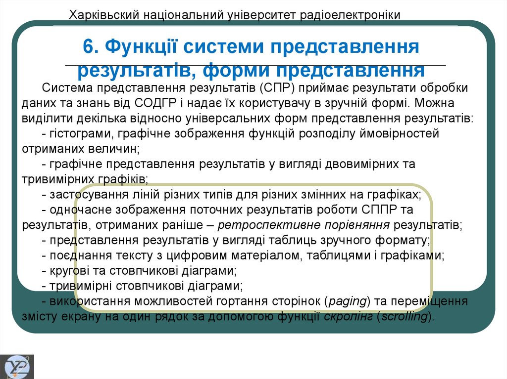 Харківьский національний університет радіоелектроніки6. Функції системи представлення