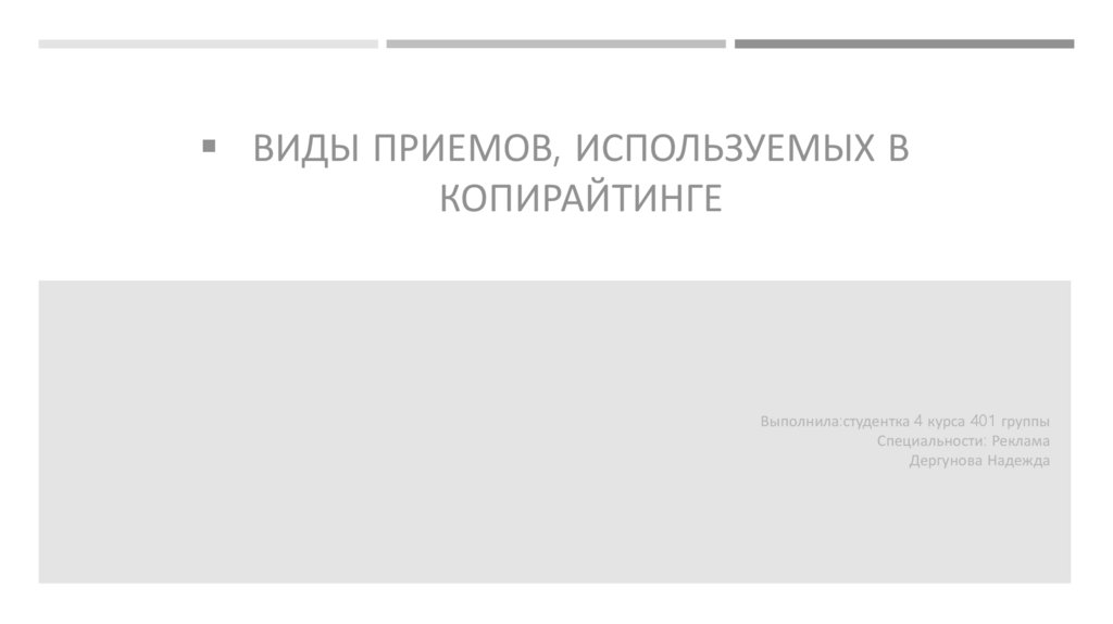 ВИДЫ ПРИЕМОВ, ИСПОЛЬЗУЕМЫХ ВКОПИРАЙТИНГЕ