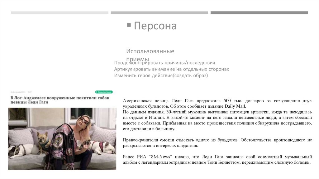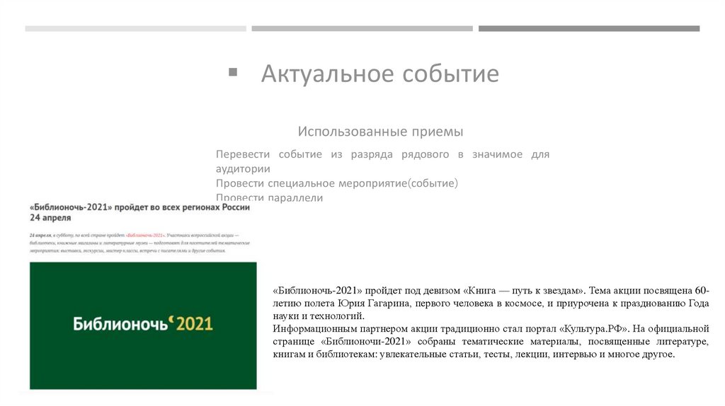 Актуальное событиеИспользованные приемы
