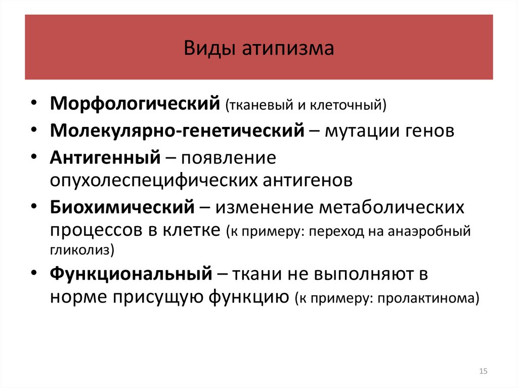 Виды атипизма• Морфологический (тканевый и клеточный)