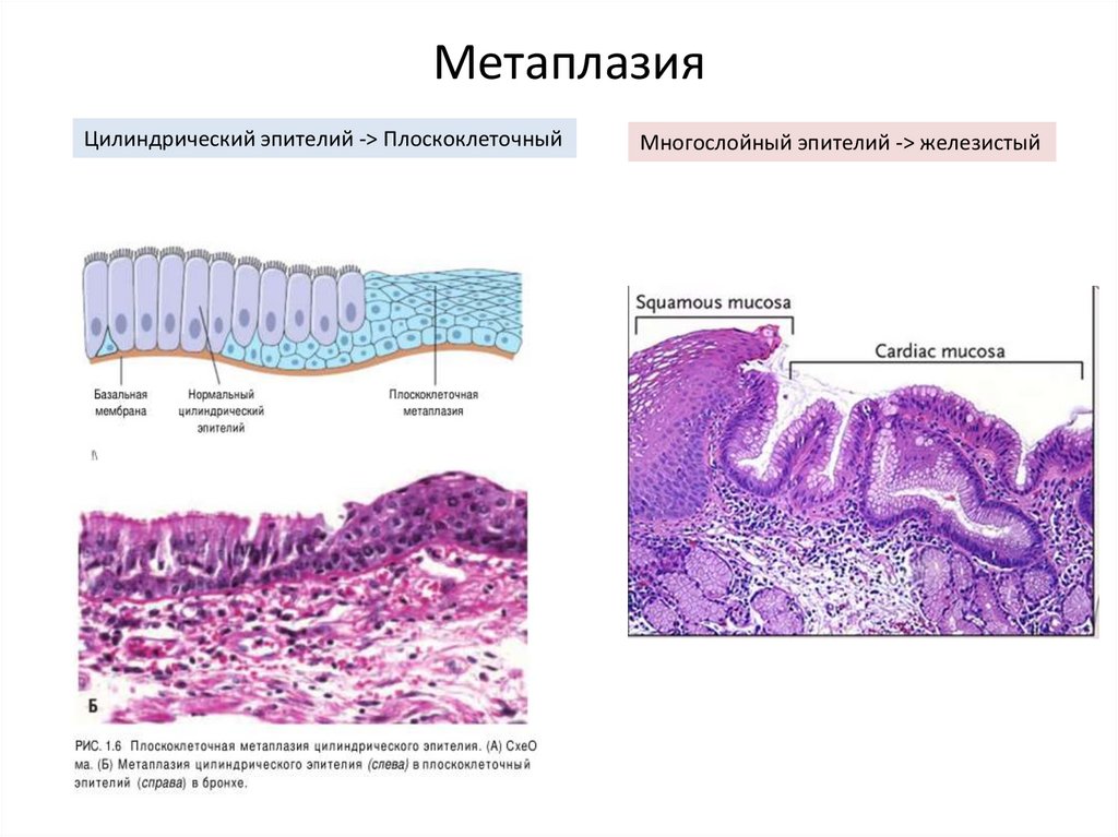 МетаплазияЦилиндрический эпителий -> Плоскоклеточный