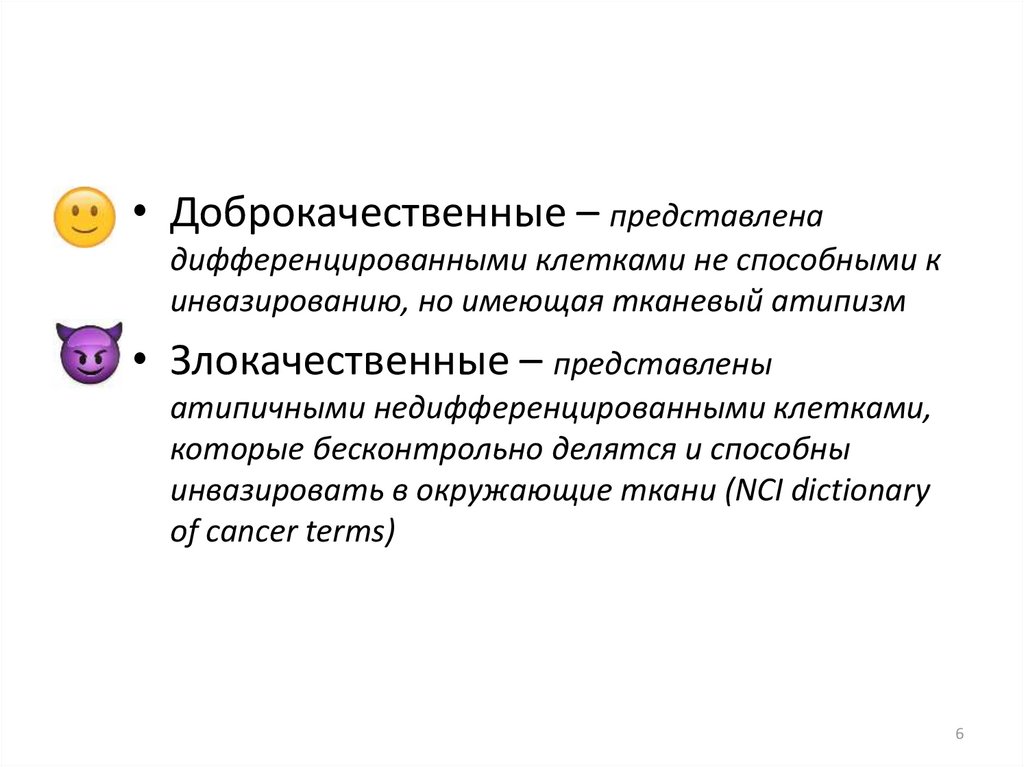 • Доброкачественные – представленадифференцированными клетками не способными к