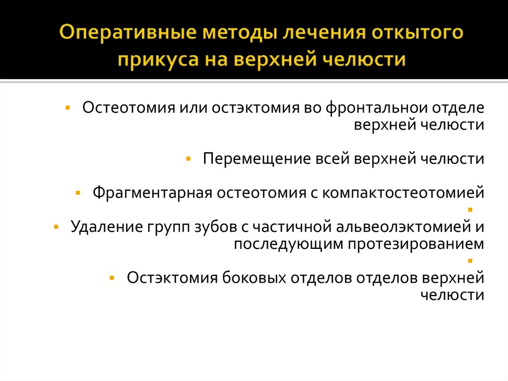 Остеотомия или остэктомия во фронтальнои отделеверхней челюсти