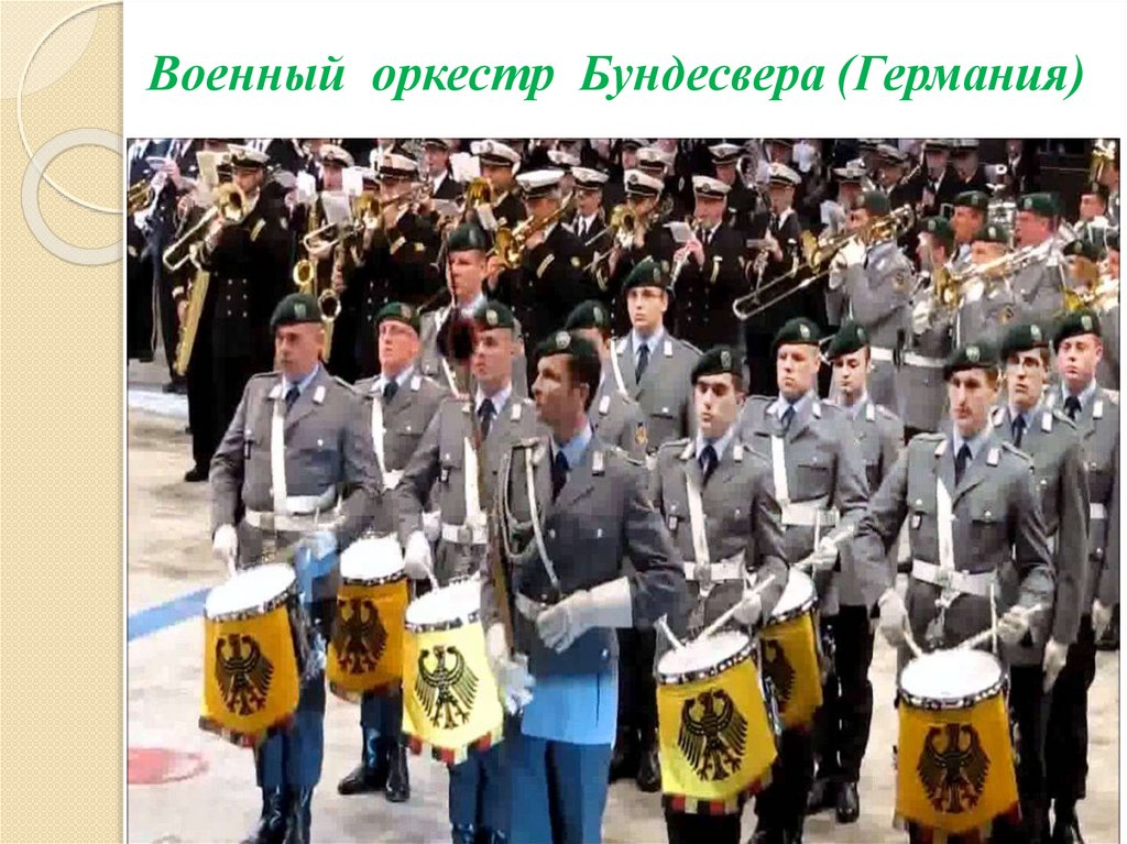 Существуют военные оркестры однородные,состоящие из медных и ударных инструментов, и