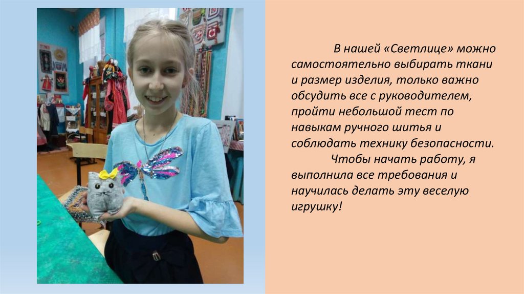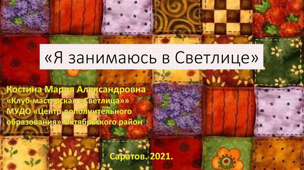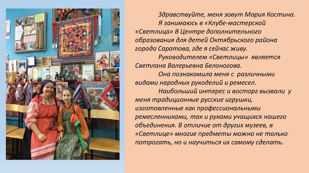 Здравствуйте, меня зовут Мария Костина.Я занимаюсь в «Клубе-мастерской