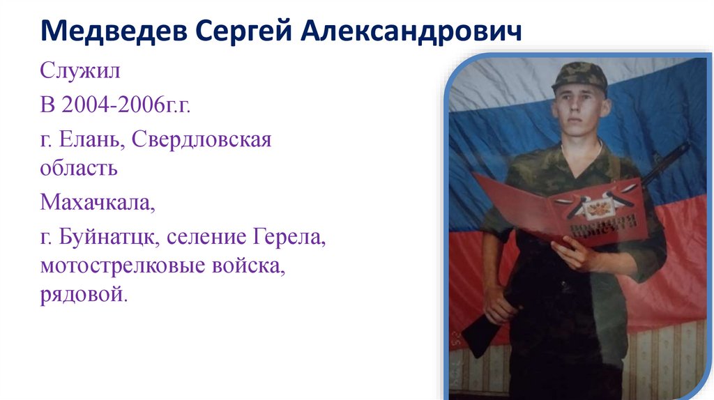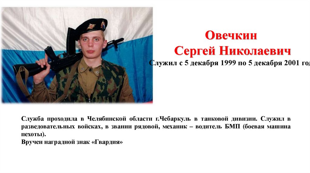 Служил с 5 декабря 1999 по 5 декабря 2001 год