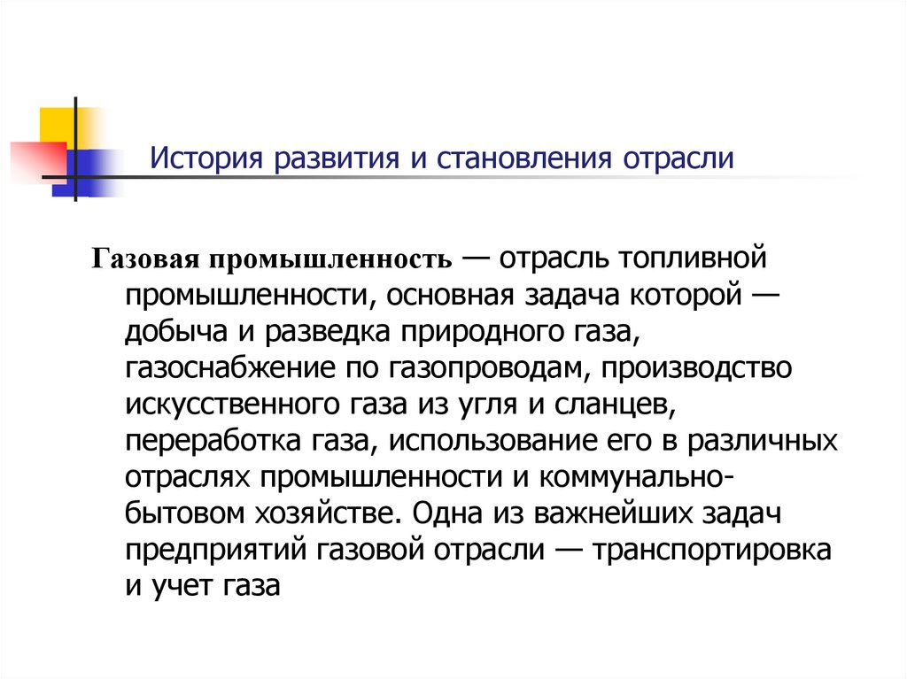 История развития и становления отраслиГазовая промышленность — отрасль топливной