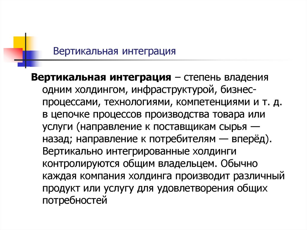 Вертикальная интеграцияВертикальная интеграция – степень владения