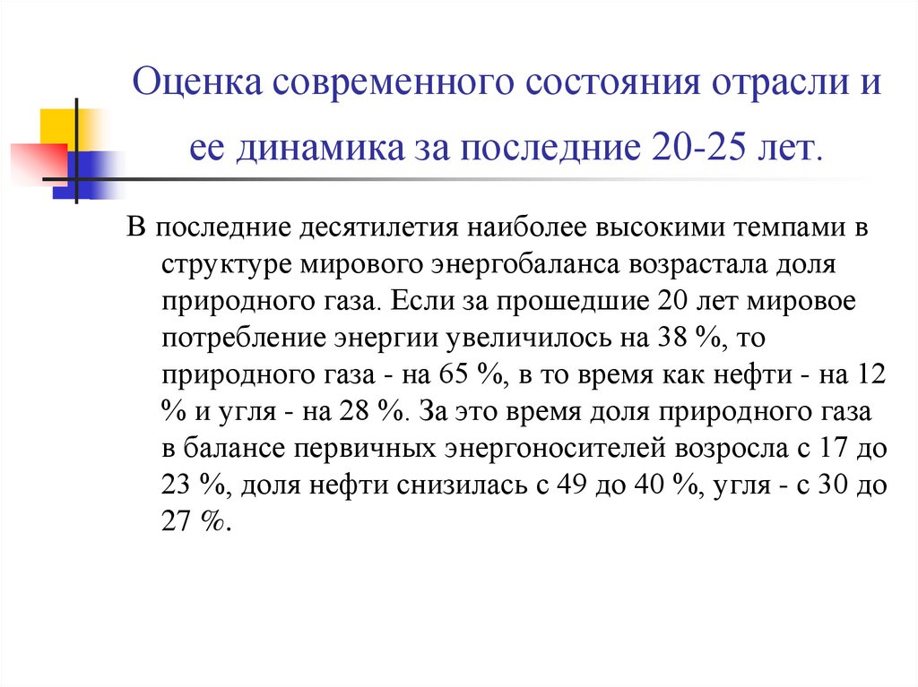 Оценка современного состояния отрасли иее динамика за последние 20-25 лет.