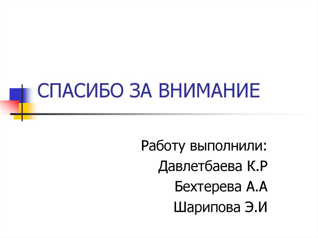 СПАСИБО ЗА ВНИМАНИЕРаботу выполнили: