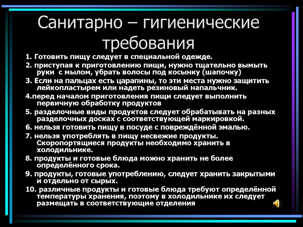 1. Готовить пищу следует в специальной одежде.2. приступая к приготовлению пищи, нужно тщательно вымыть