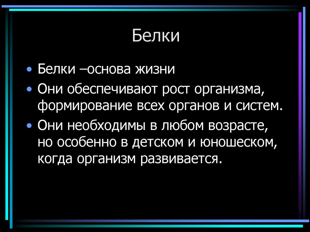• Белки –основа жизни• Они обеспечивают рост организма,