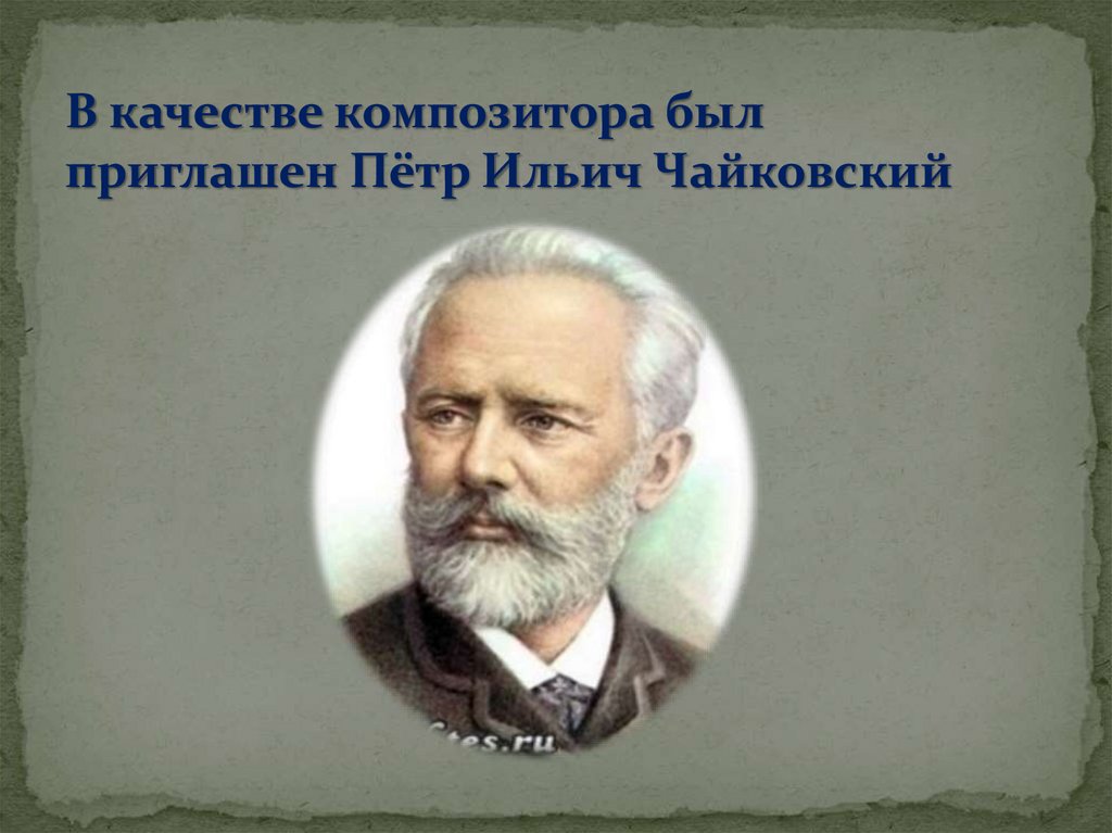 В качестве композитора былприглашен Пётр Ильич Чайковский