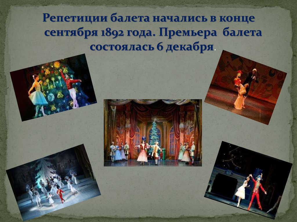 Репетиции балета начались в концесентября 1892 года. Премьера балета