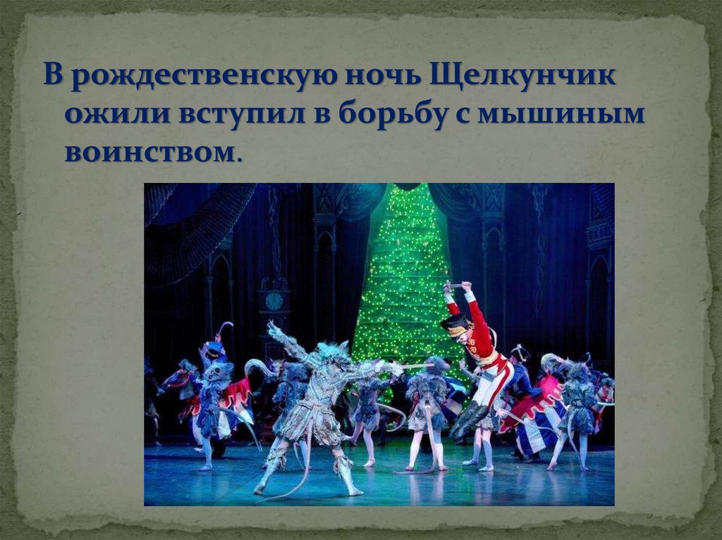 В рождественскую ночь Щелкунчикожили вступил в борьбу с мышиным