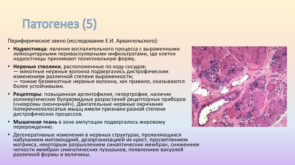 • Мышечная ткань в зоне ампутации подвергалось жировому