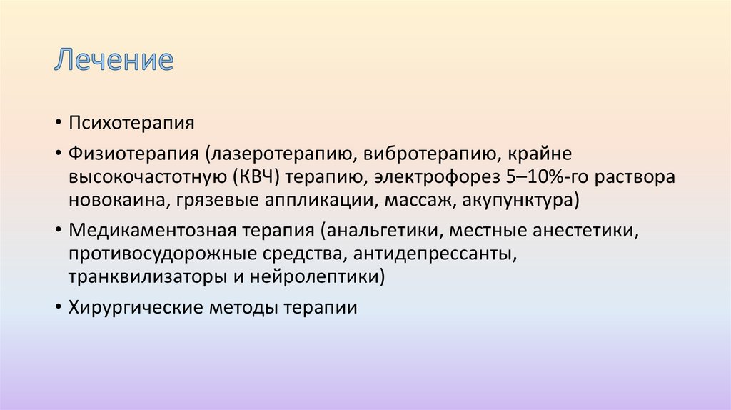 • Психотерапия• Физиотерапия (лазеротерапию, вибротерапию, крайне