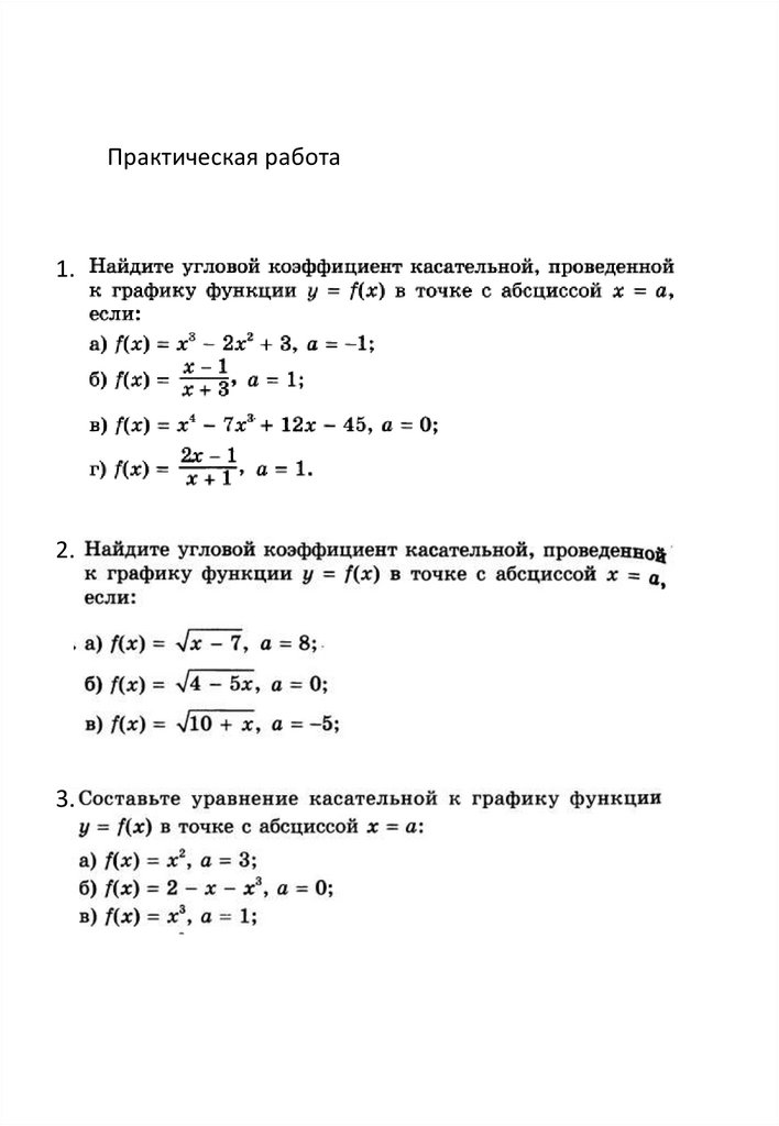 Геометрический смысл производной. Решение примеров на геометрический смысл производной
