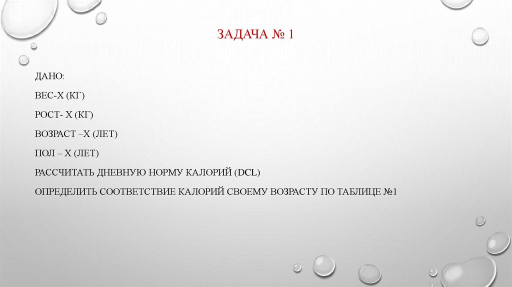 ОПРЕДЕЛИТЬ СООТВЕТСТВИЕ КАЛОРИЙ СВОЕМУ ВОЗРАСТУ ПО ТАБЛИЦЕ №1