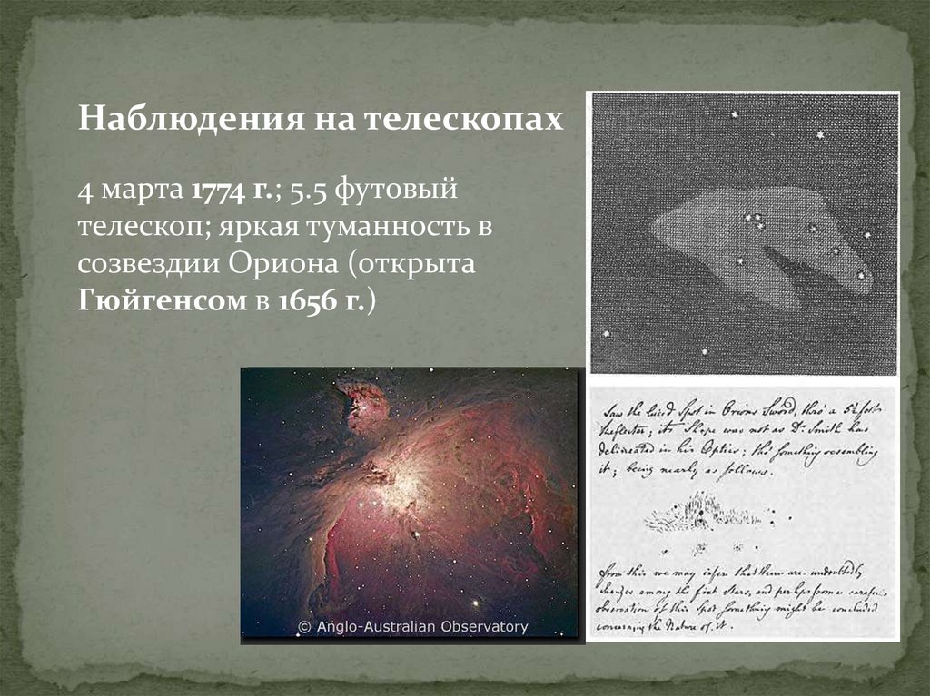 Наблюдения на телескопах4 марта 1774 г.; 5.5 футовый