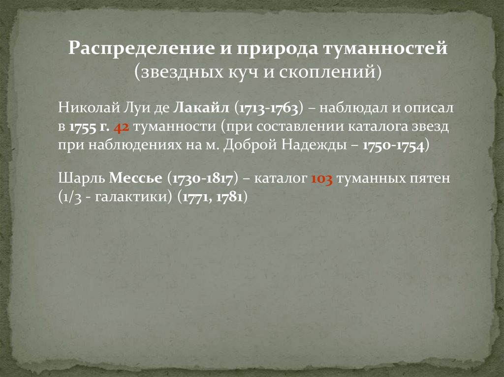 в 1755 г. 42 туманности (при составлении каталога звезд