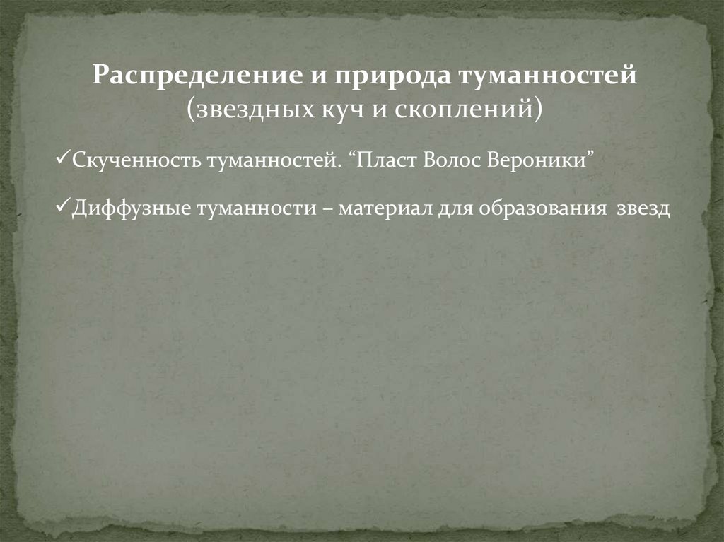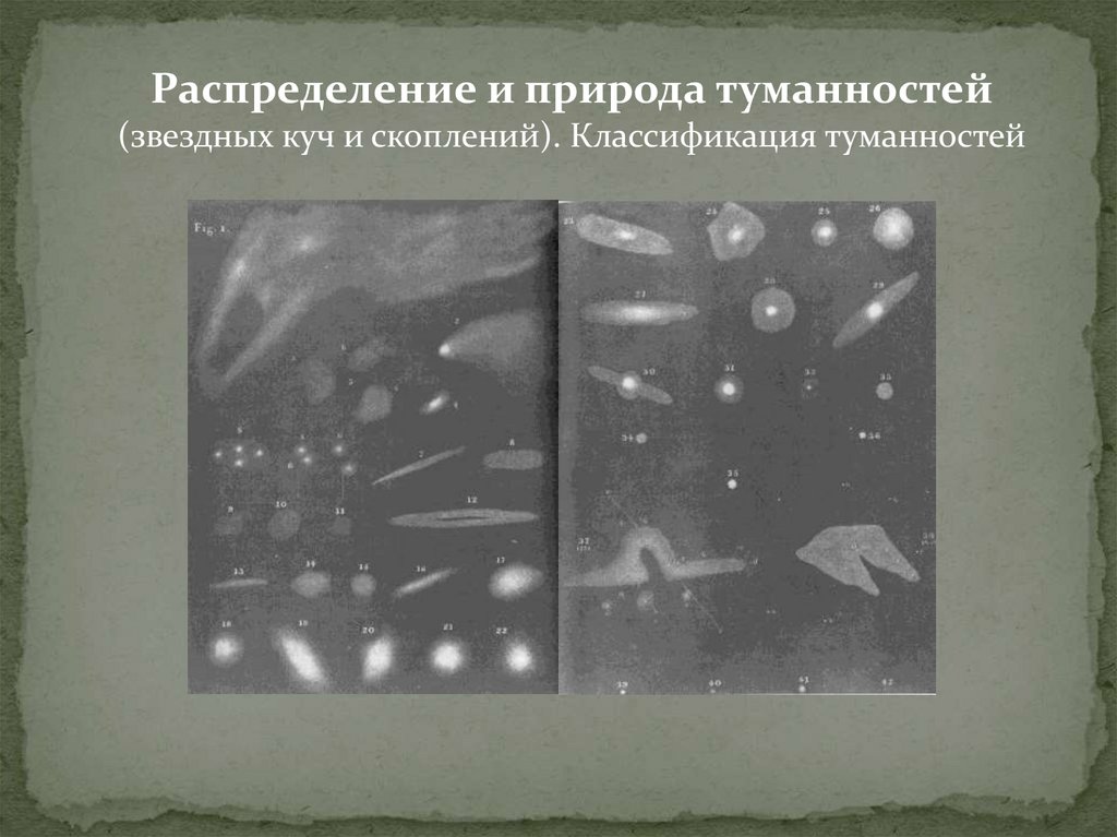 Распределение и природа туманностей(звездных куч и скоплений). Классификация туманностей