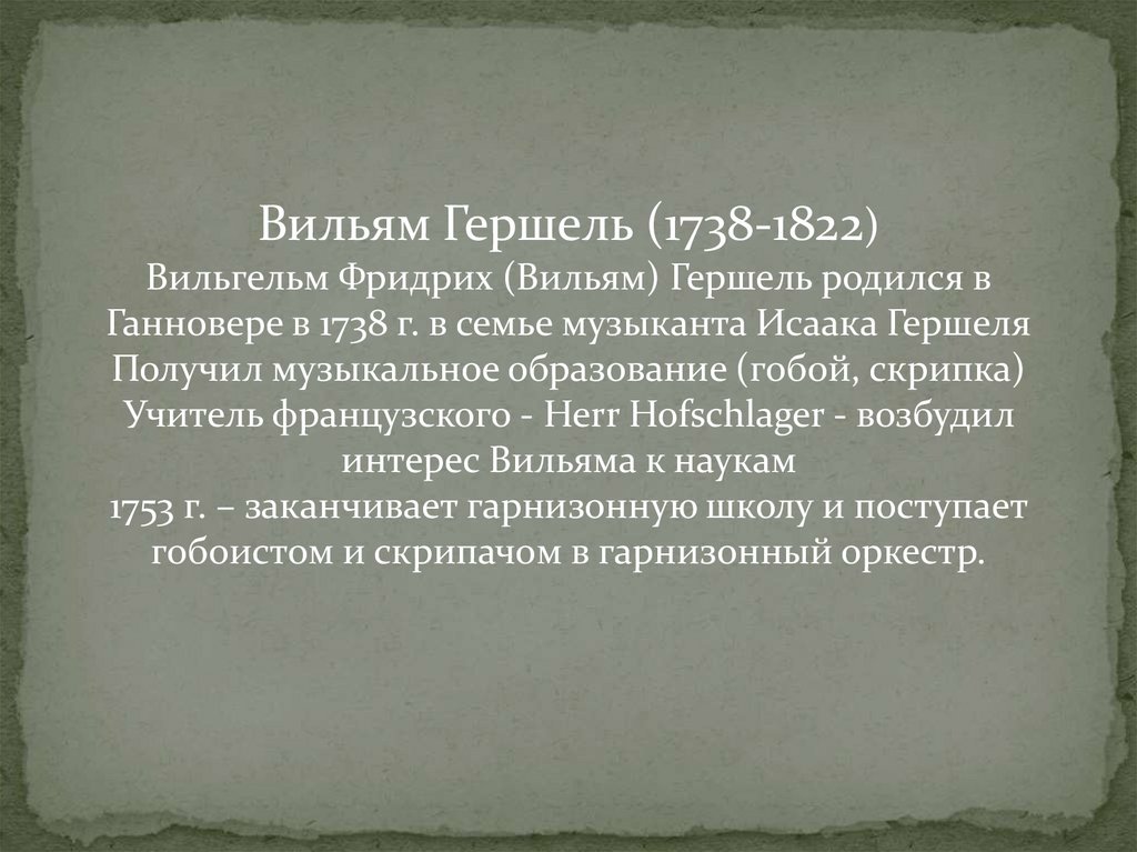Вильям Гершель (1738-1822)Вильгельм Фридрих (Вильям) Гершель родился в