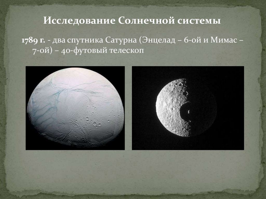Исследование Солнечной системы1789 г. - два спутника Сатурна (Энцелад – 6-ой и Мимас –