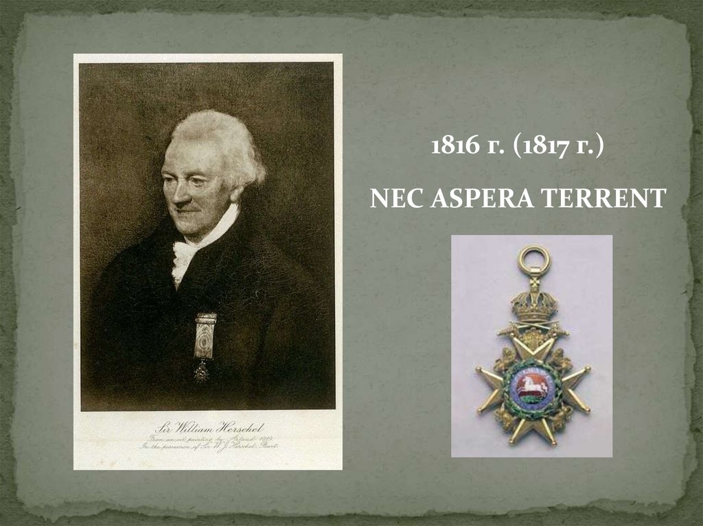 1816 г. (1817 г.)NEC ASPERA TERRENT