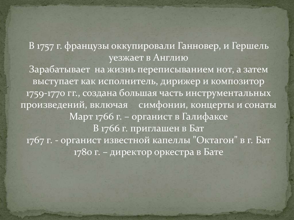В 1757 г. французы оккупировали Ганновер, и Гершельуезжает в Англию