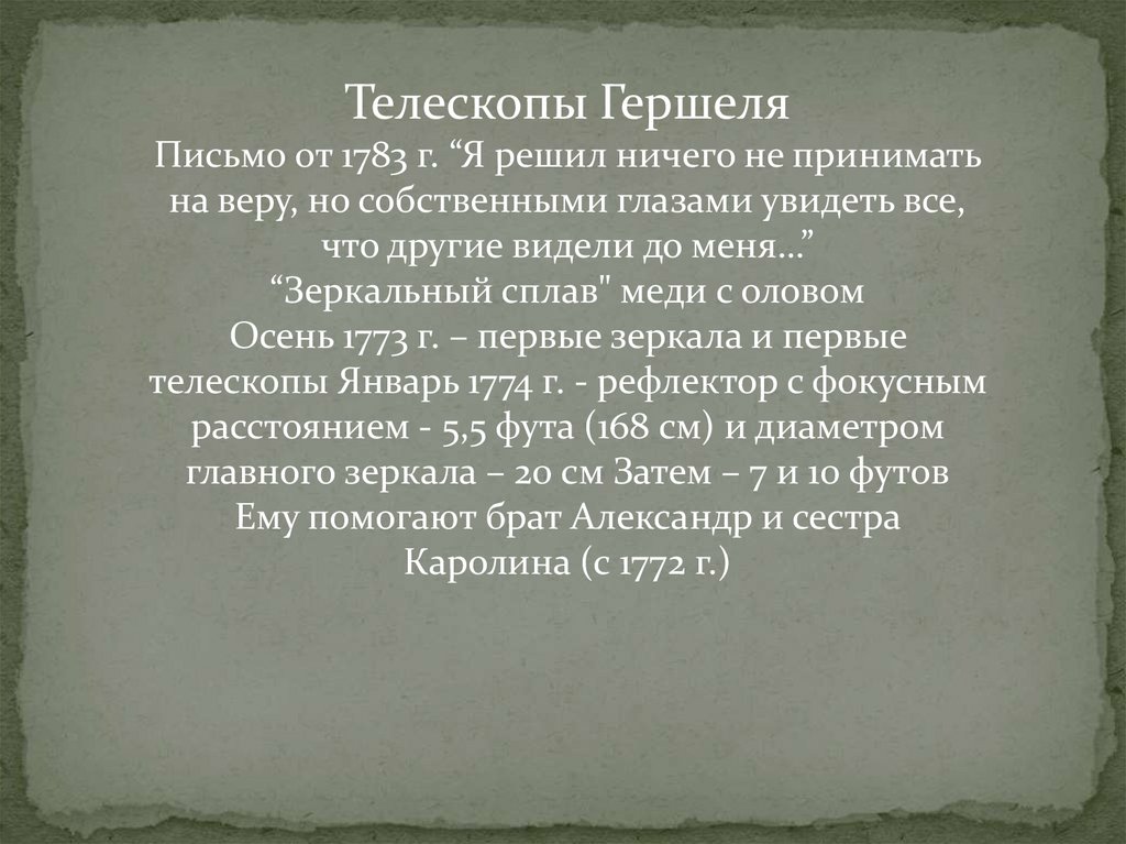 Телескопы ГершеляПисьмо от 1783 г. “Я решил ничего не принимать