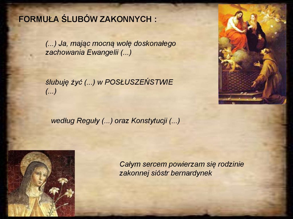 FORMUŁA ŚLUBÓW ZAKONNYCH :(...) Ja, mając mocną wolę doskonałego