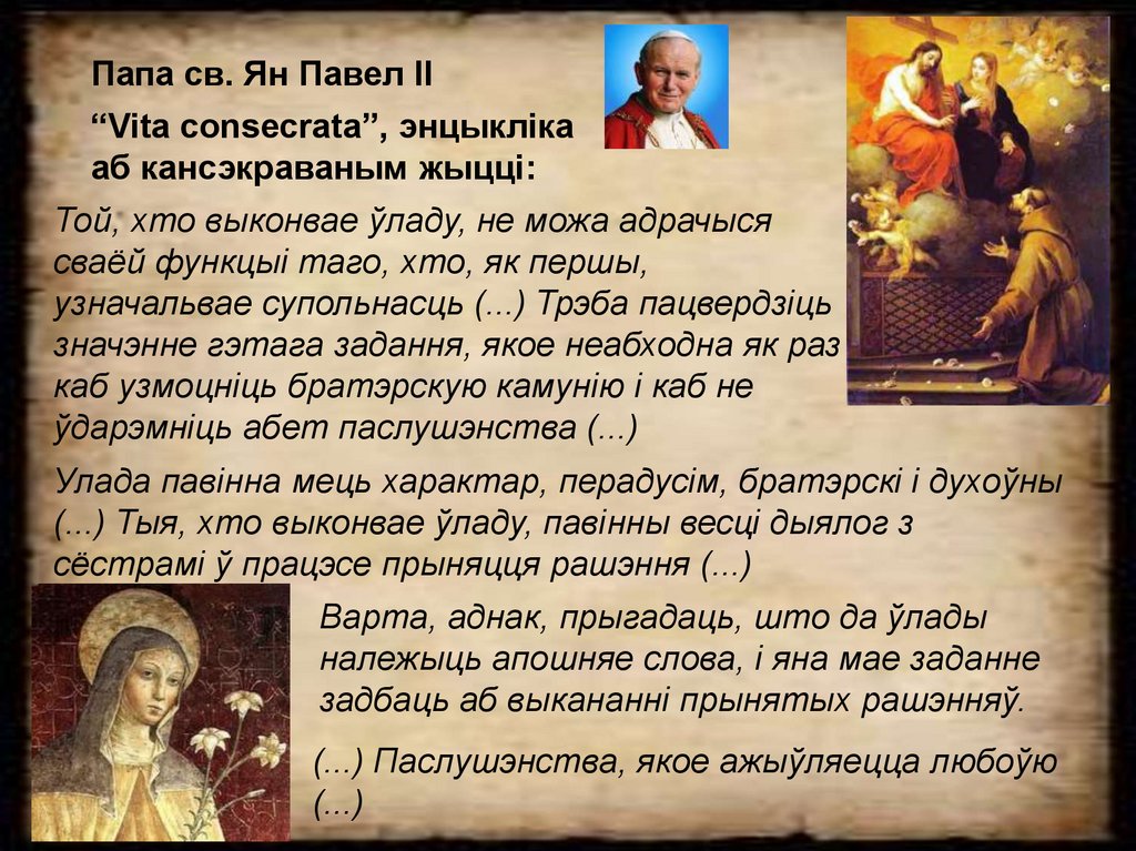 (...) Паслушэнства, якое ажыўляецца любоўю